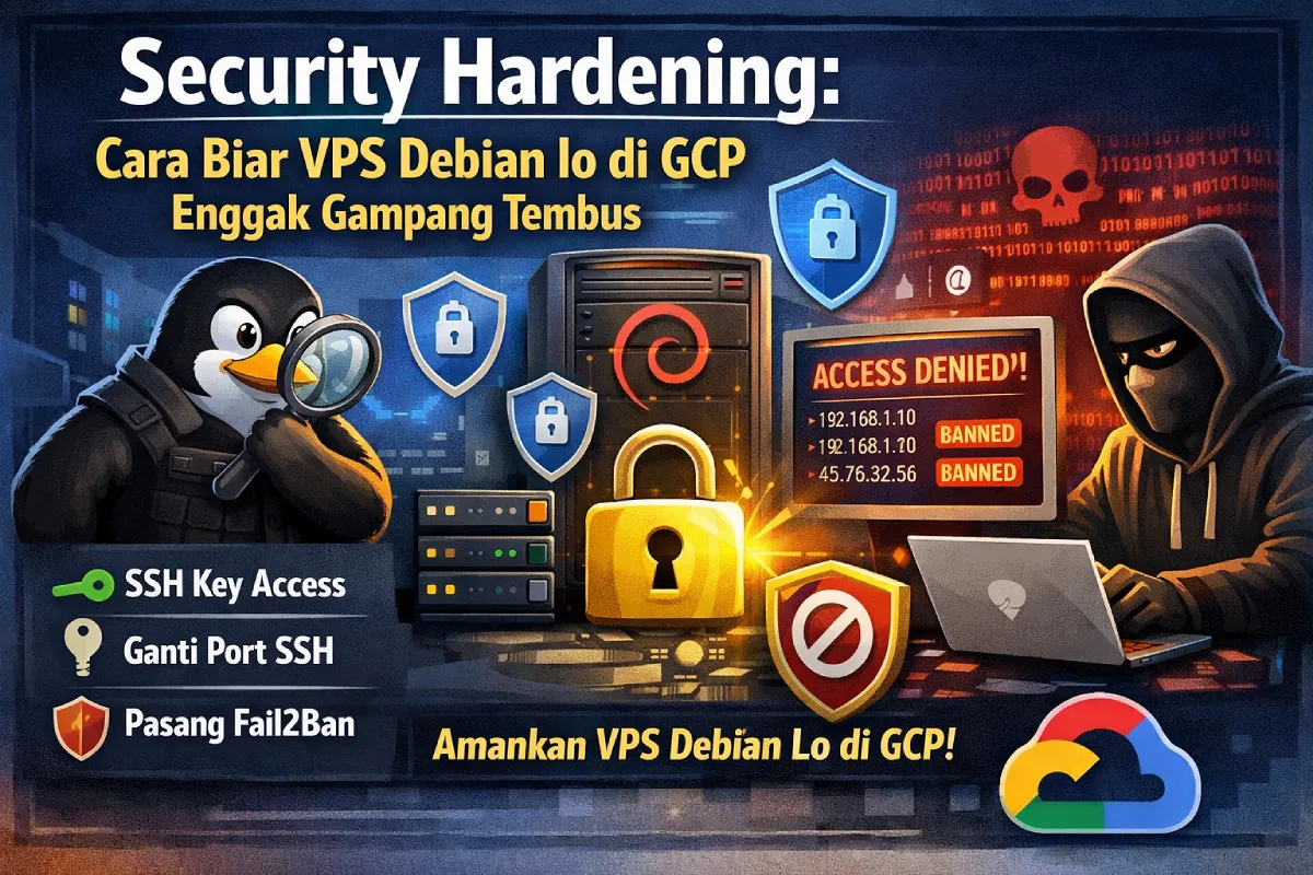Kalau lo cuma ngandelin password standar atau port default, tinggal nunggu waktu aja sampe server lo jebol. Hari ini kita bakal bahas gimana cara ngerantai VPS Debian lo di GCP biar lebih “hardened” dan nggak gampang ditembus.